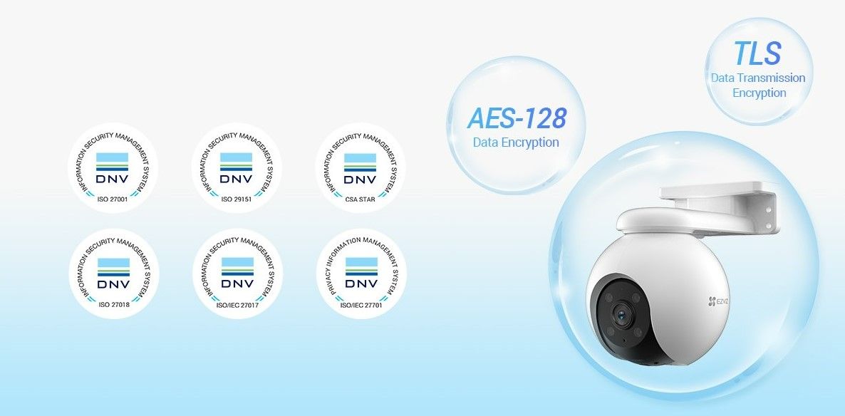 EZVIZ отримав численні сертифікати DNV з інформаційної безпеки (ISO/IEC 27001:2013), захисту персональних даних (ISO/IEC 27701:2019), хмарної безпеки (CSA STAR) тощо.