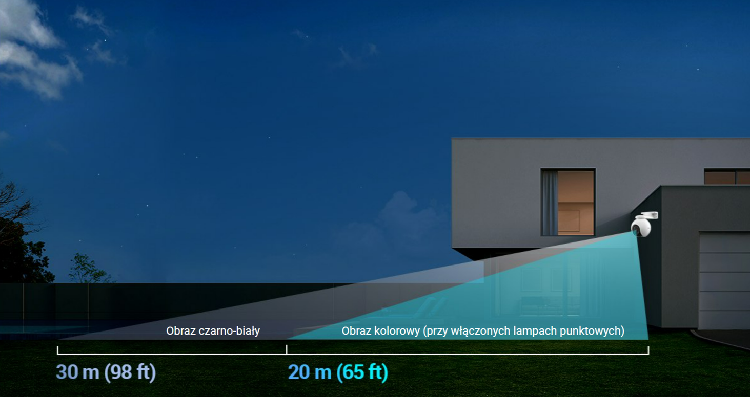 Камера не дає вам непомітно прокрастися під покровом темряви. Кольорове зображення вночі забезпечується вбудованими прожекторами, а при вимкнених лампах записується феноменальне чорно-біле зображення. Крім того, камера може ввімкнути «розумний нічний режим», щоб автоматично переключатися з чорно-білого на кольоровий при виявленні руху.