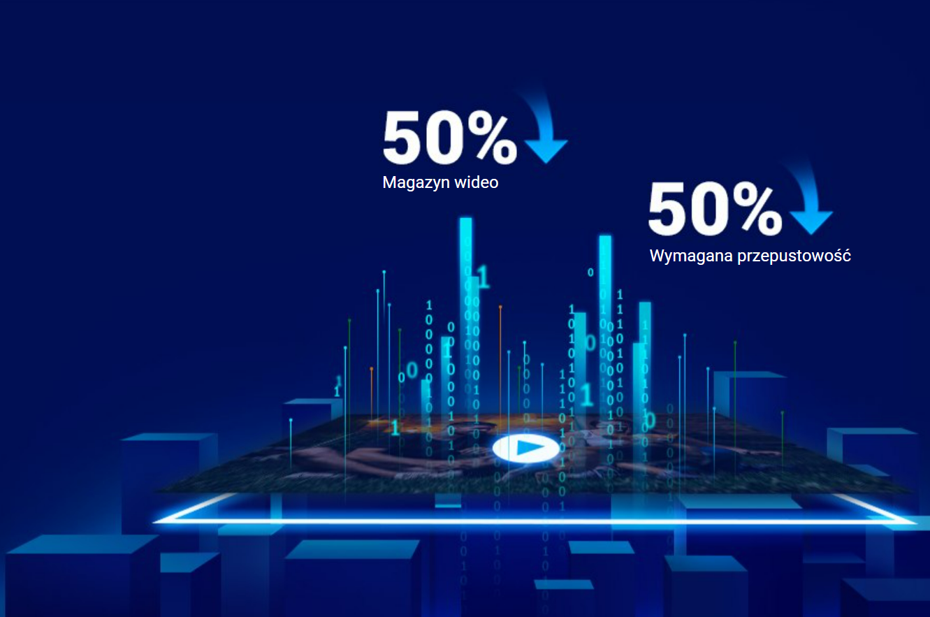 Технологія H.265, порівняно з широко використовуваною технологією стиснення відео – H.264, забезпечує більшу плавність перегляду відео, записаних у роздільній здатності. Крім того, вам не доведеться турбуватися про брак місця для зберігання через великі відеофайли – технологія H.265 дозволяє зменшити їх розмір до 50%⁴.