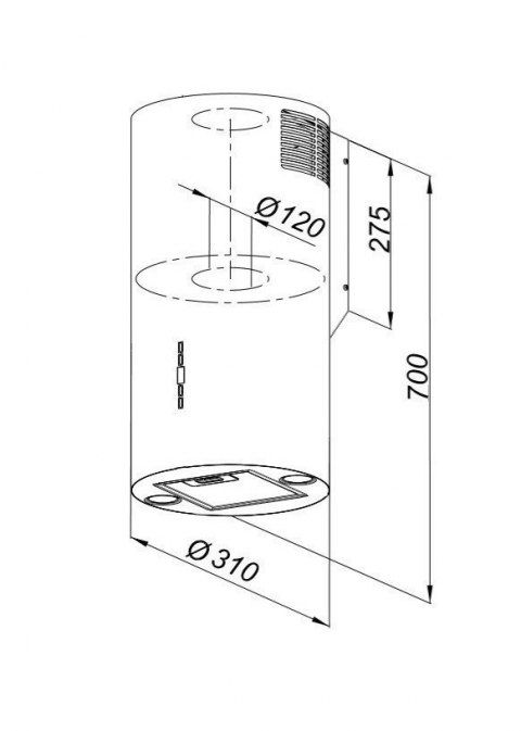 Капюшон має діаметр 31 см і висоту 70 см. Електронне управління - має функціональний електронний дисплей. Крім того, ми можемо керувати ним за допомогою пульта дистанційного керування, який входить у комплект. Витяжка може працювати як витяжка або в замкнутому контурі як абсорбер - необхідна установка вугільних фільтрів FWMGPZ.