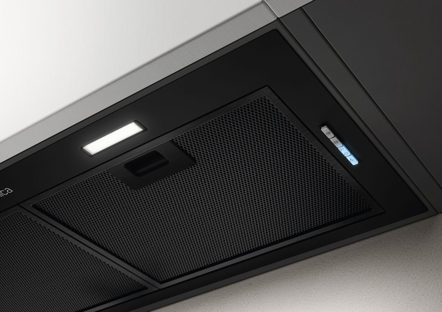 Ця мінімалістична витяжка ідеально сховається під шафою, залишаючи легкий доступ до кнопок. Розроблений із повністю плоским краєм, він ідеально поєднується з меблями.