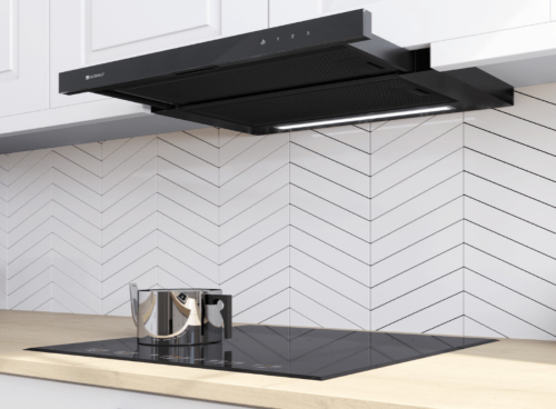 Завдяки своїй компактній формі (ширина 59,6 см, глибина 28,5 см) кухонна витяжка Teslo 60.1 Black ідеально підходить для невеликих інтер'єрів._x000D_ Тонка лінія і сучасний дизайн роблять цю витяжку ідеальною для сучасного інтер'єру.Вбудована кухонна витяжка Teslo 60.1 Black виготовлена з чорного загартованого скла та високоякісної чорної лакованої сталі.