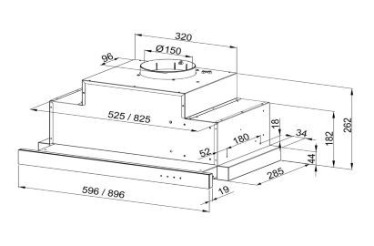Розміри кухонної витяжки Teslo 60.1 Black