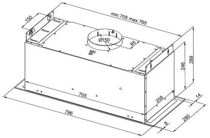 Ширина: 80 см Мінімальна гучність: 44 дБ Діаметр виходу: fi15 см