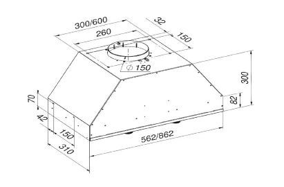 Ширина: 60 см Мінімальна гучність: 45 дБ Діаметр виходу: fi15 см