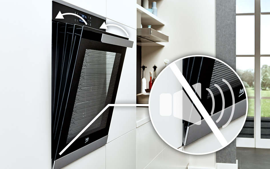 Дверцята з плавним зачиненнямЗавдяки використанню спеціальних петель дверцята духовки Beko закриваються м'яко, тихо та зручно. Ви можете бути впевнені, що ніколи випадково не пошкодите їх і не будете роздратовані гучним грюканням дверцят духовки.