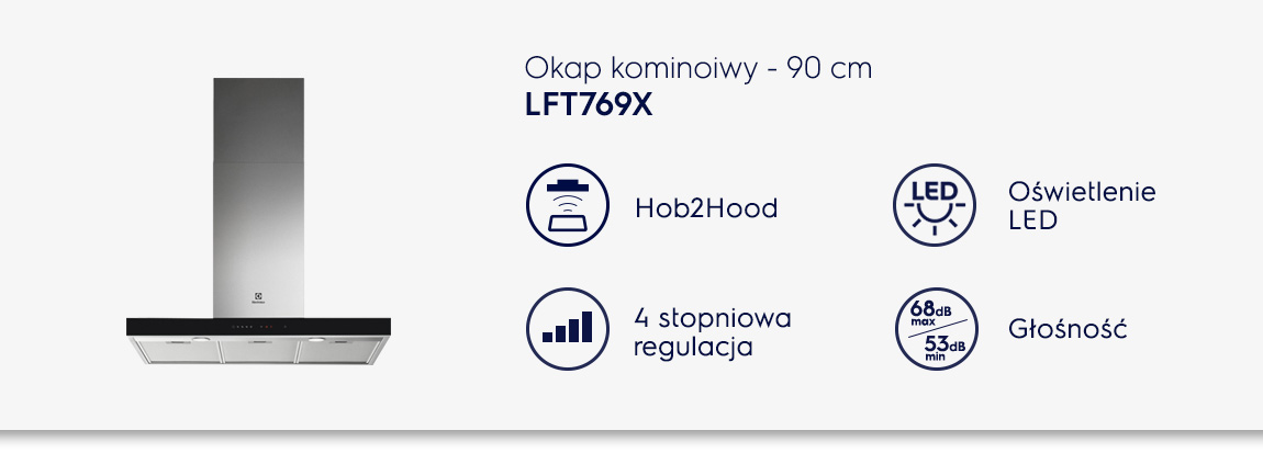 Витяжка оснащена практичною функцією Hob2Hood, яка автоматично контролює роботу витяжки та її освітлення. Дозвольте функції H2H регулювати потужність відсмоктування та зосередьтеся на приготуванні.
