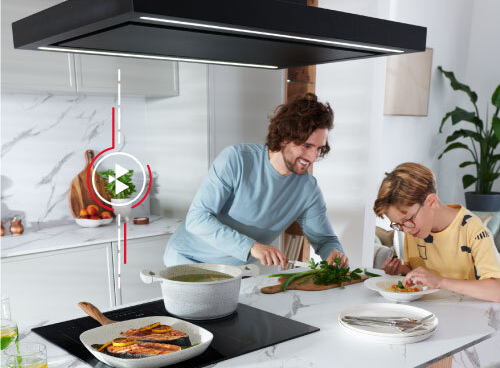 Інтелектуальні рішення важливі на кухні. Завдяки датчикам руху освітлення витяжки включається автоматично, коли ви наближаєтеся до конфорки, і вимикається, коли ви віддаляєтеся від неї на більш тривалий час. Це не тільки полегшує роботу, але й економить енергію. Одним словом: комфорт у ваших руках.