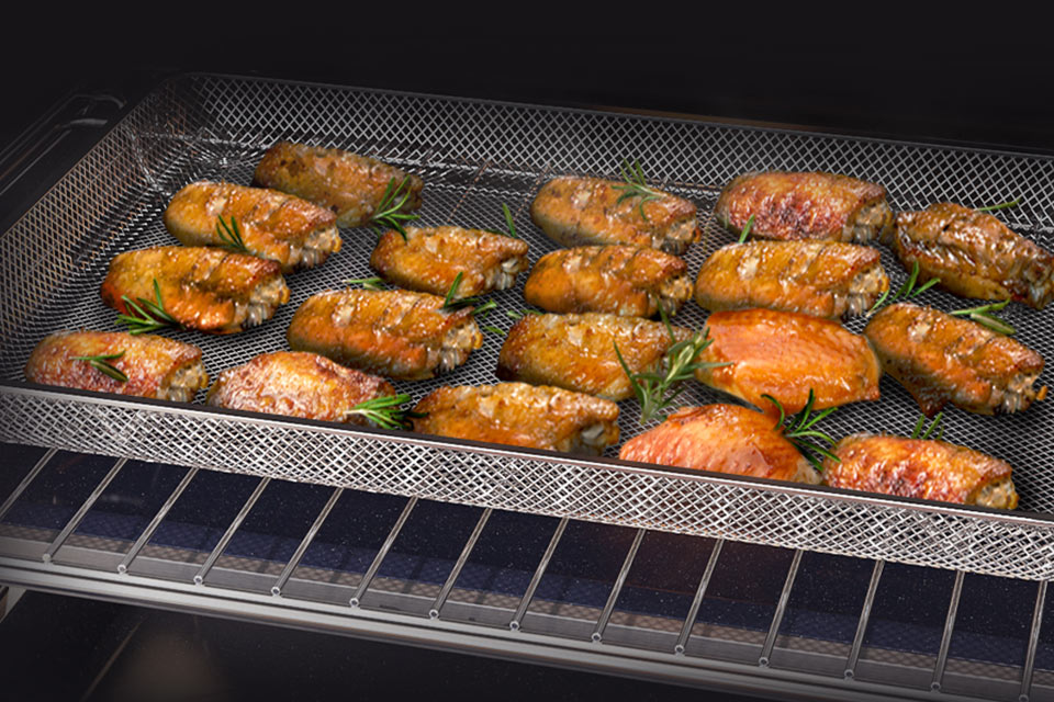 Насолоджуйтесь смаком смаженої їжі, приготовленої здоровішим способом, без фритюрниці! Ефект хрусткої смаженої страви буде досягнутий завдяки температурі духовки. Вибраний продукт викладіть на спеціальне деко і додайте трохи олії, після чого виберіть режим Air Fry. Циркулююче гаряче повітря оточує їжу з усіх боків і чудово підрум’янить їжу зовні, зберігаючи її соковитість. Усунення непотрібного жиру дозволить вам приготувати смачну та кориснішу картоплю фрі, хрусткі картопляні крокети чи овочі.