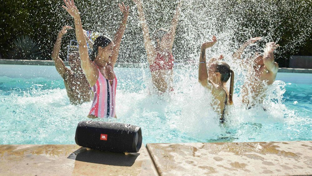 Розважатися біля басейну з динаміком JBL Xtreme 2 — суцільне задоволення. Вам не потрібно турбуватися про бризки або навіть падіння у воду. Пристрій має сертифікат IPX7, що забезпечує роботу, навіть якщо колонка знаходиться під водою протягом 30 хвилин на глибині 1 метр.
