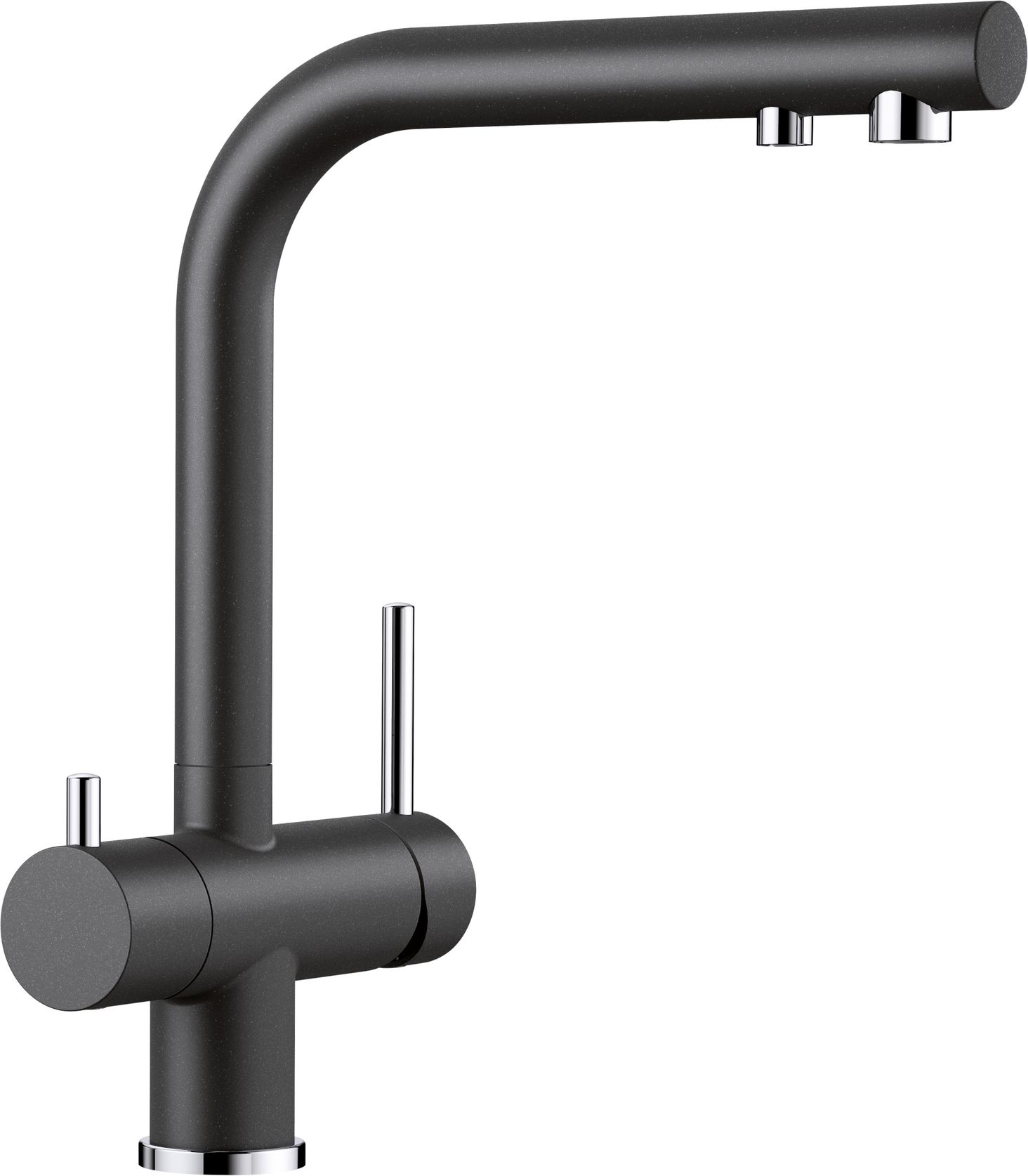FONTAS II Сучасний змішувач для кухні з опцією фільтра для води 2-в-1, з важелем для активації подачі водопровідної води з правого боку та важелем для очищеної води з лівого боку. Гігієнічність: окрема подача очищеної питної води вода - не можна змішувати з водопровідною водою Компактне та практичне рішення: завдяки двофункціональному носику немає необхідності вирізати окремий отвір для носика з очищеною водою Інтегрований носик для обох впускних отворів води зі спеціальним потоком Регулятор Надзвичайно великий радіус дії завдяки виливу, що обертається на 360° За кольором змішувачі ідеально підходять до поверхні мийок і чаш: кольорові версії підходять до композитних мийок SILGRANIT, а версії PVD Steel – до мийок з нержавіючої сталі< /p>