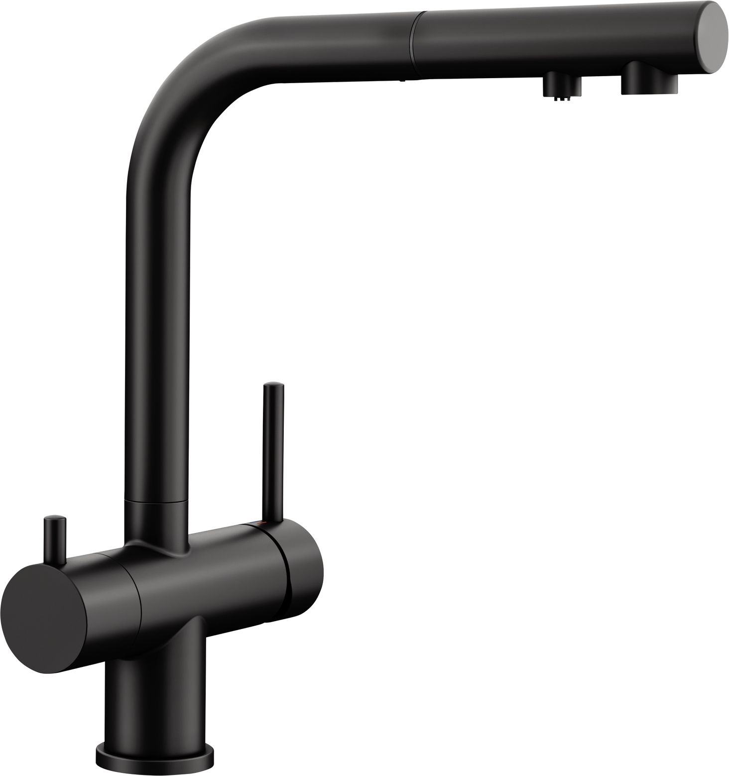 Змішувачі BLANCO з можливістю підключення до фільтрованої води управляються за допомогою окремих важелів, які активують подачу очищеної питної та водопровідної води.