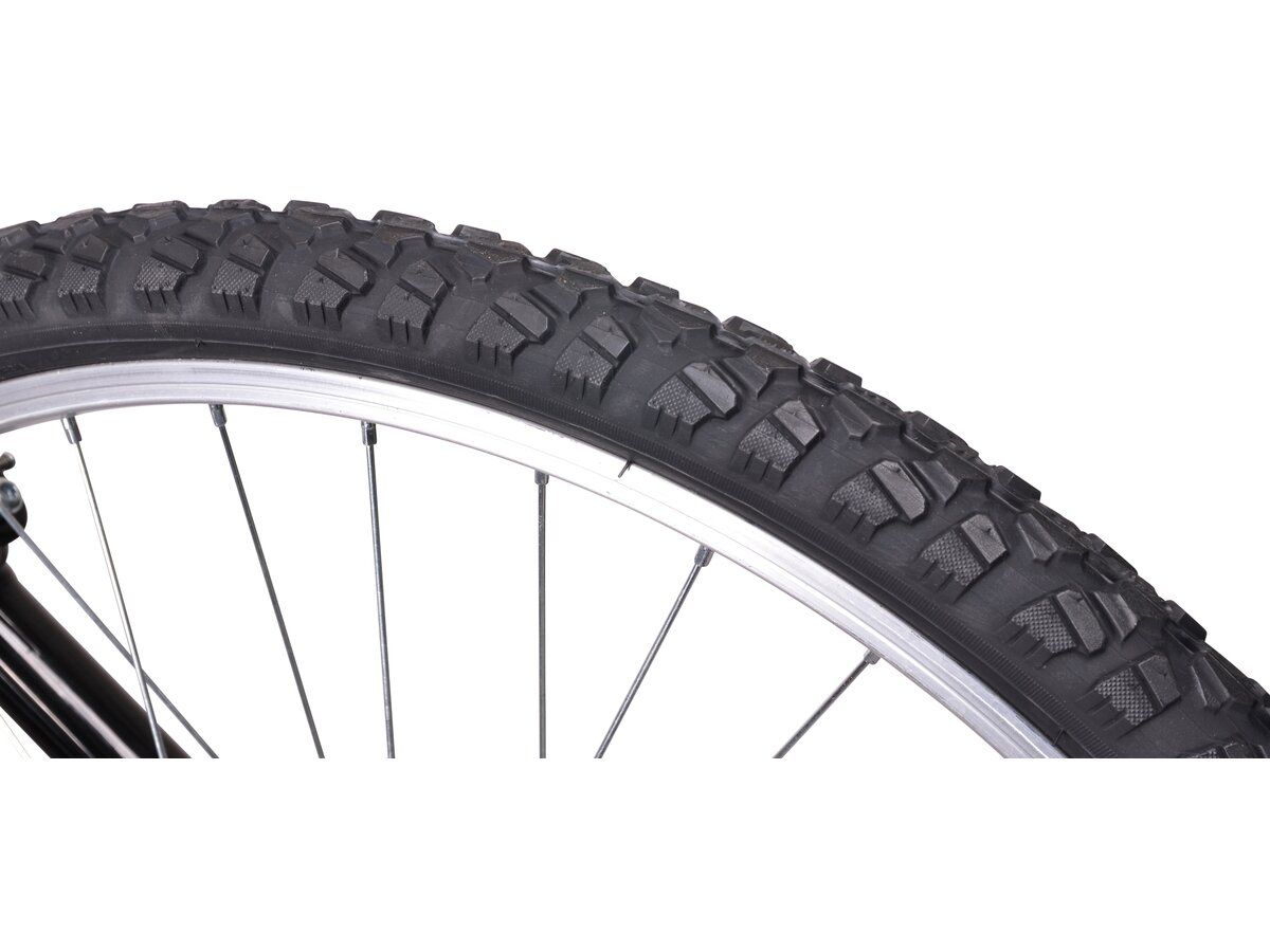 Велосипед INDIANA X-Pulser 1.6 має великі 26-дюймові колеса, встановлені на алюмінієві диски, які ідеально підходять для їзди по складній місцевості. Великі колеса полегшують долання нерівностей дороги та перешкод, таких як бордюри.
