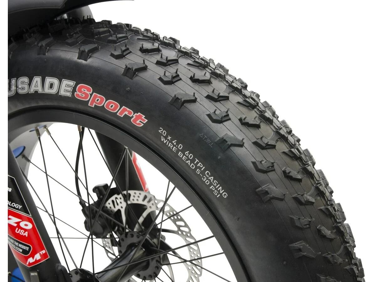 Електровелосипед ARGENTO Fat Bi Max має великі 20-дюймові колеса та шини Kenda, які ідеально підходять для їзди по місту або по асфальтованій дорозі. Вони надзвичайно стійкі до пошкоджень і чудово гасять вібрації.