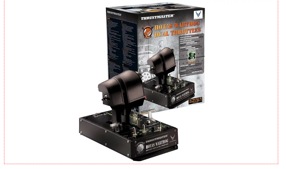 Дросельні елементи також були дуже ретельно розроблені. Пристрій з подвійною дросельною заслінкою дозволяє незалежно керувати 2 двигунами. Крім того, система блокування дозволяє приєднати 2 амортизатори поруч. Магнітні 3D-датчики забезпечують неперевершену точність, що дуже важливо в іграх-симуляторах. Крім того, пристрій оснащено реалістичною зчіпкою IDLE в системі «Pull & Push» і реалістичною знімною зчіпкою AFTERBURNER.