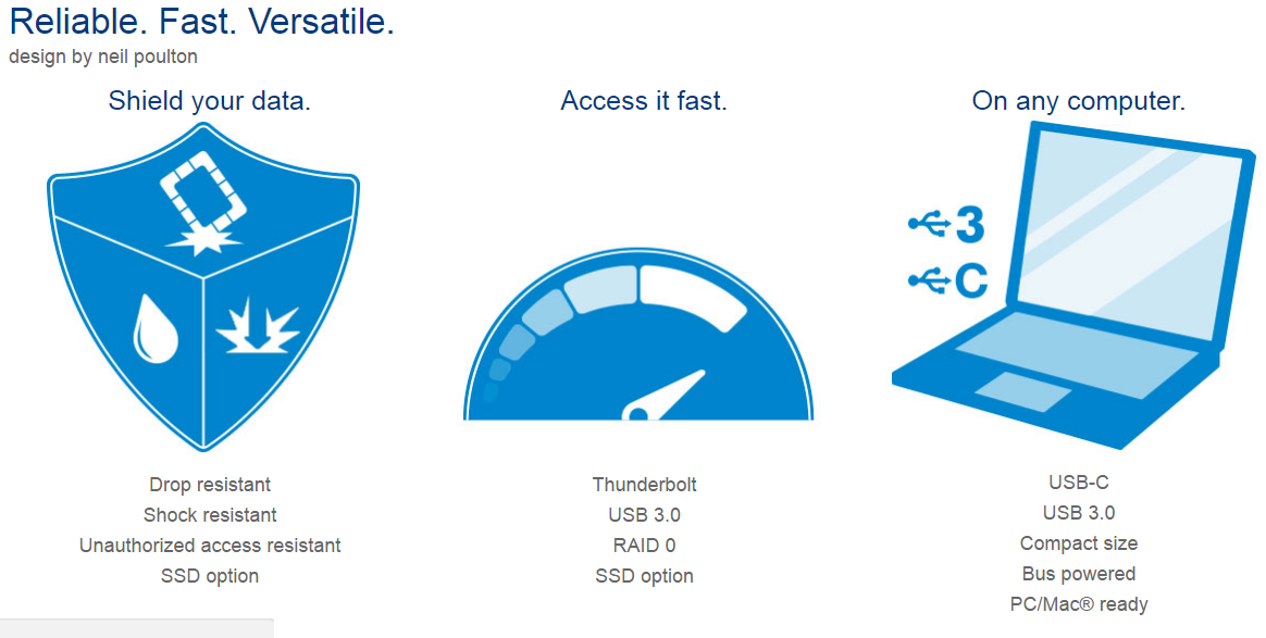 Накопичувачі Rugged є одними з наших найпопулярніших жорстких дисків завдяки своєму культовому дизайну та безпеці даних. Створюючи Rugged Mini, ми зменшили розмір і додали безліч нових функцій, що зробило його ідеальним рішенням для переміщення даних у полі.