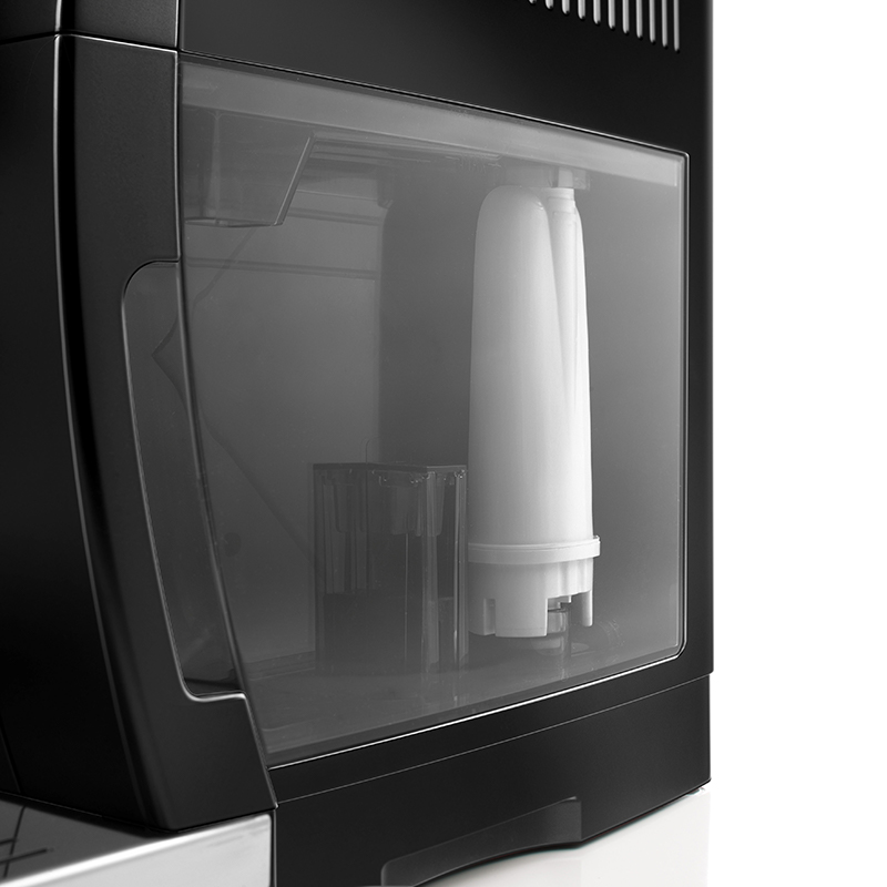 Унікальною особливістю всіх автоматичних кавомашин De'Longhi є можливість вибору жорсткості води, яка використовується для приготування напоїв. Є 4 рівні жорсткості на вибір. Рекомендуємо додатково використовувати фільтри для води, які не тільки запобігають утворенню накипу в приладі, але і продовжують термін його служби. Використання фільтрів також позитивно впливає на смак і аромат кави.