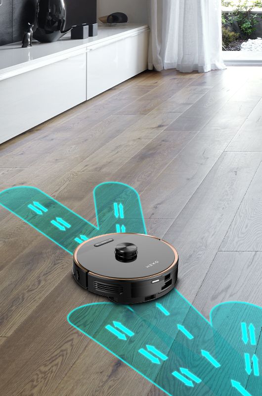 Потужність всмоктування робота HEXO pro становить до 2700 Па. Основна щітка має «плаваючу» конструкцію, яка максимально прилягає до підлоги. Ці дві функції сприяють найвищій ефективності прибирання, яку можуть досягти роботи-прибиральники. Додатково в налаштуваннях прибирання робот дозволяє включити режим подвійного прибирання, завдяки якому робот буде прибирати дану кімнату двічі - паралельно і перпендикулярно. Ця функція гарантує, що на підлозі не залишиться бруду.