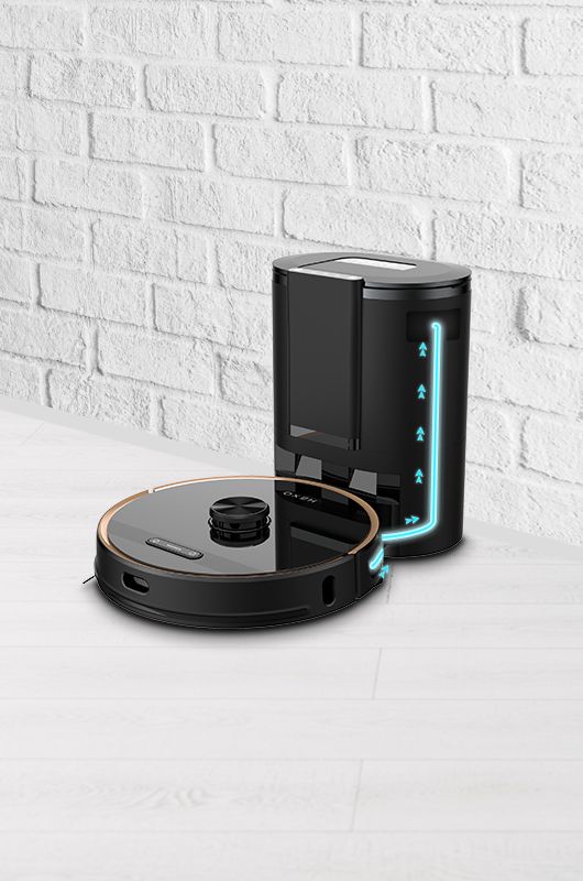 Робот HEXO pro оснащений інтелектуальним відсмоктуванням пилу та станцією зарядки акумулятора. Ємність мішка для пилу становить до 4 літрів, що дозволяє працювати протягом декількох місяців без обслуговування. На станції є кнопки для початку роботи та повернення на базу, що є зручною альтернативою для керування роботом. Станція також повідомляє про необхідність заміни пилозбірника. Завдяки лазерній навігації та радіозв’язку робота зі станцією повернення на станцію відбувається дуже швидко, незалежно від того, де знаходиться робот.