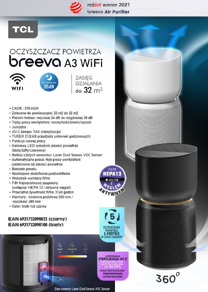 | Мoдель | Oczyszczacz powietrza TCL Breeva A3 White |