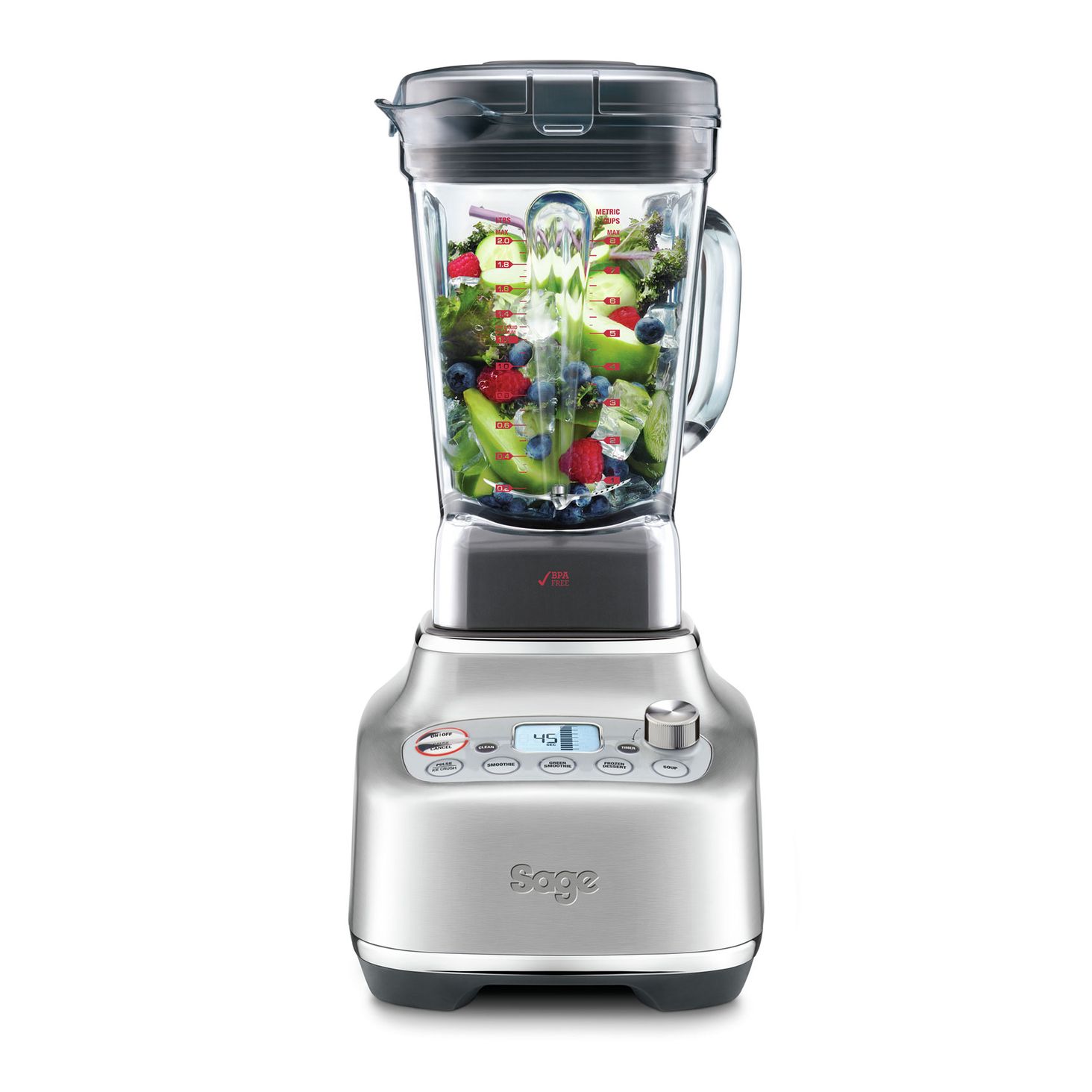 У високопродуктивному настільному блендері SBL920 Q використовується потужний двигун потужністю 1800 Вт. Його властивості дозволять швидко та легко приготувати мигдальне молоко з мигдалю, арахісове масло з арахісу, борошна, приготувати смачні та кремові зелені смузі та навіть овочевий суп завдяки спеціальній програмі СУП.