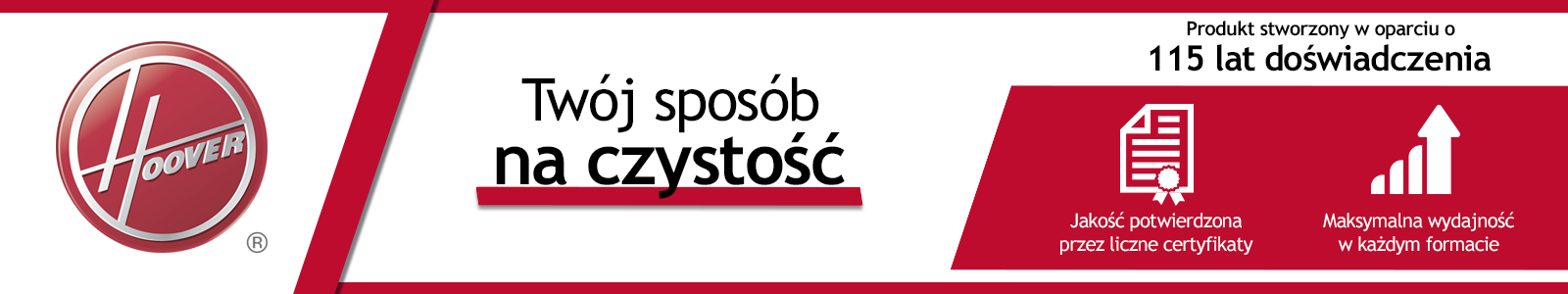 Довіру потрібно заслужити – бренд Hoover має 115-річний досвід. Невід'ємний елемент американської родини під час економічного буму, ексклюзивне обладнання британського маєтку, синонім чистої підлоги. 115 років виробництва пристроїв, які змінюють визначення комфорту під час щоденного прибирання. 115 років технологічного розвитку, досліджень і випробувань, протягом яких наші пилососи подолали сотні мільйонів кілометрів на килимах і паркетній підлозі по всьому світу. Після 115 років надійності ви стаєте частиною соціальної та культурної свідомості. Це зобов'язує. Тому довіртеся творцям пилососів. Довіртеся Гуверу.