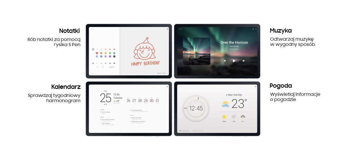 Найближчий кінотеатр? Там де ти. Завдяки більш тонким рамкам цей зручний, компактний планшет оснащений більшим дисплеєм 10,4 дюйма. Влаштуйте спонтанний сеанс перегляду фільму наодинці в парку або подивіться улюблений серіал, лежачи в ліжку – у альбомній орієнтації пристрій пропонує подвійний динаміки, які забезпечують насичений просторий звук.