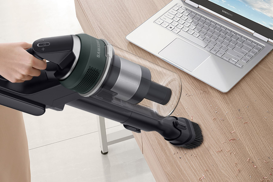 Легке прибирання завдяки легкій маневреності та простому управлінню. Корпус ручного пилососа важить всього 1,44 кг і на 11% легше звичайних пилососів Samsung. Отже, ви можете легко чистити всі кімнати, включаючи крісла та дивани, шафи та столи, жалюзі та поверхні побутова техніка, а також сходи.