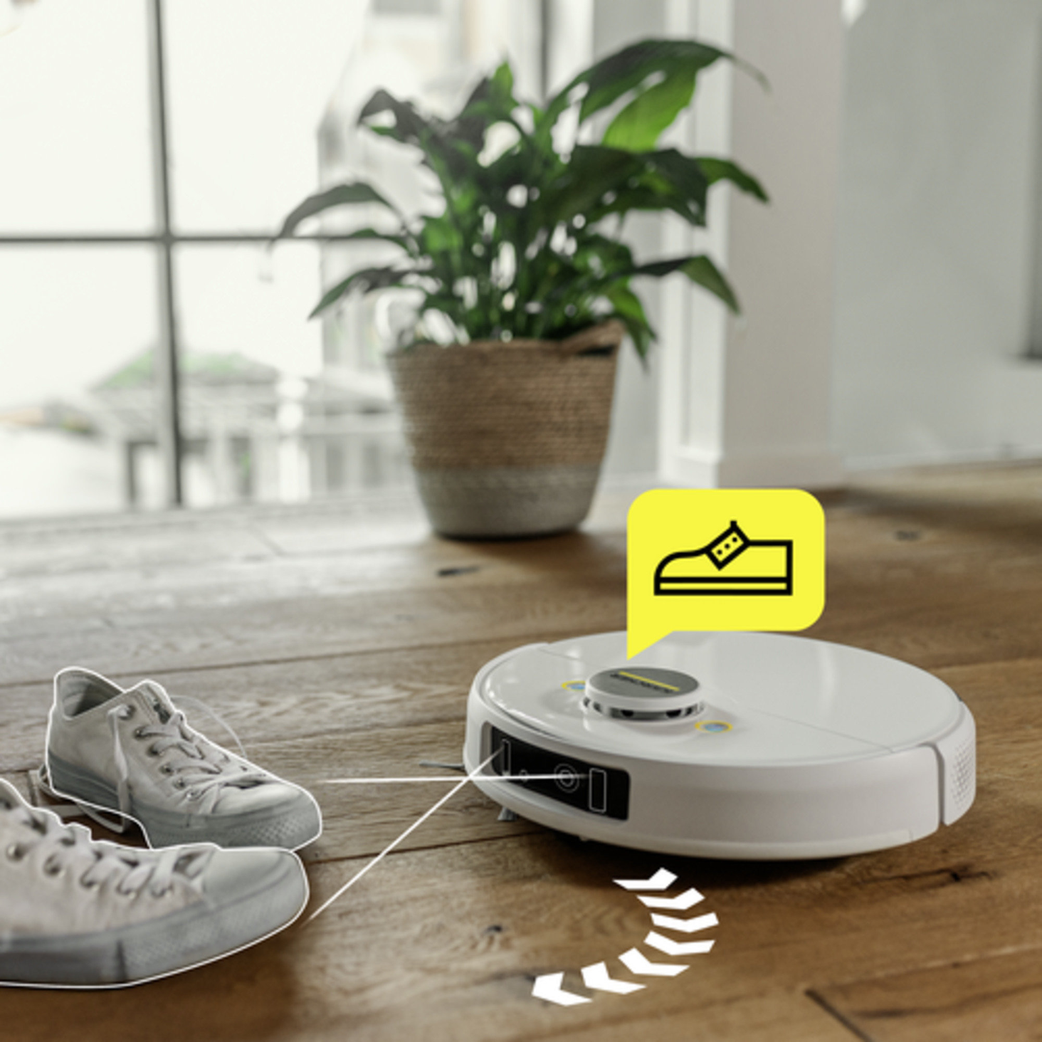 Подвійний лазерний датчик і камера дозволяють роботу розпізнавати маленькі об’єкти, які не може розпізнати навігація LiDAR (наприклад, взуття, шкарпетки чи дроти). Щоб виявити навіть маленькі або плоскі предмети (наприклад, взуття, шкарпетки або дроти), робот-пилосос використовує подвійний лазер і датчик камери. Перешкоди розміщуються на карті в додатку. Подвійний лазерний датчик і камера виявляють перешкоди, а завдяки штучному інтелекту робот уникає їх, щоб він не застряг і не пошкодився.