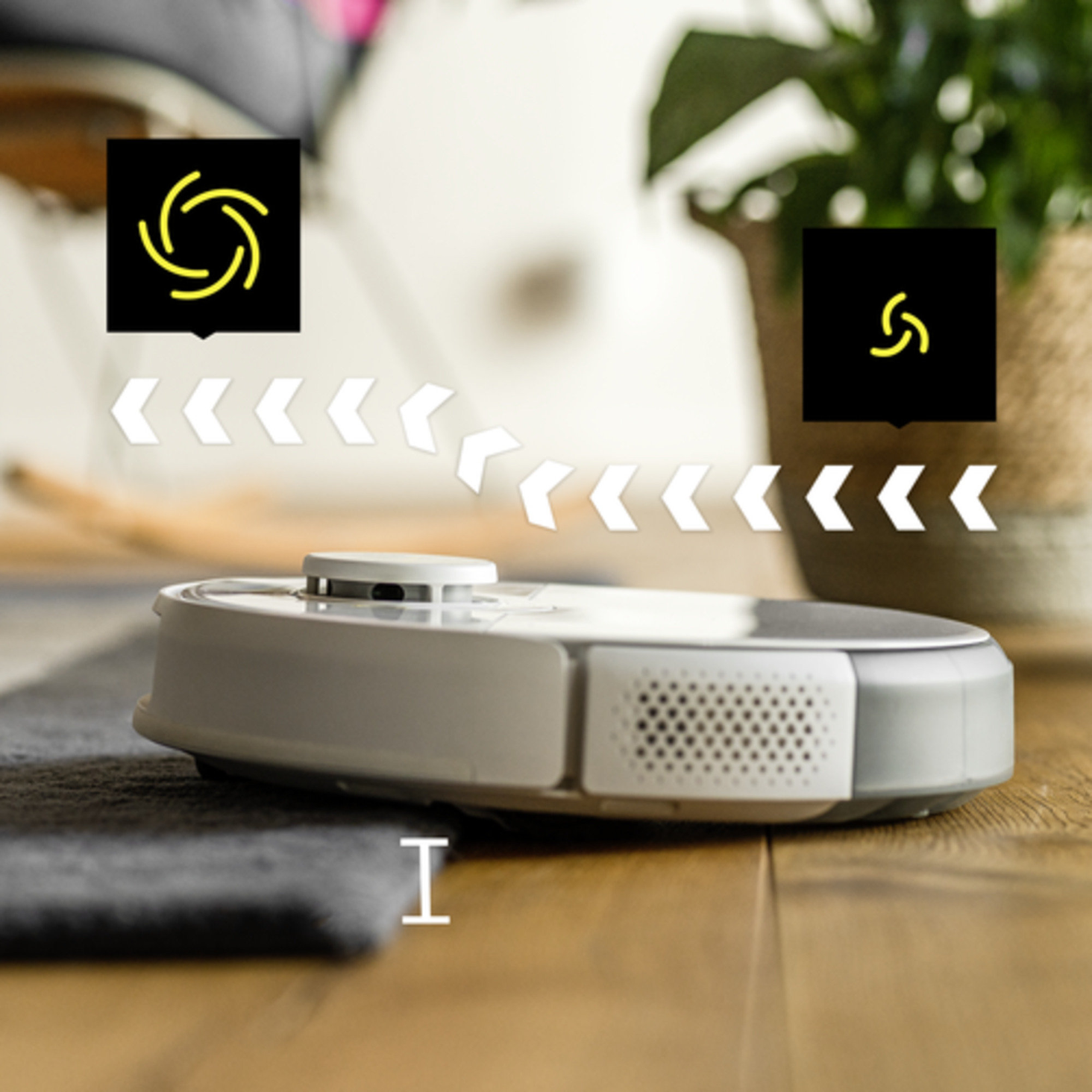 RCV 5 автоматично виявляє килими за допомогою ультразвукового датчика та показує їх на карті в програмі. У режимі мокрого прибирання робот уникає виявлених килимів. Режим Auto Boost забезпечує підвищену потужність всмоктування бруду для ще кращих результатів очищення.