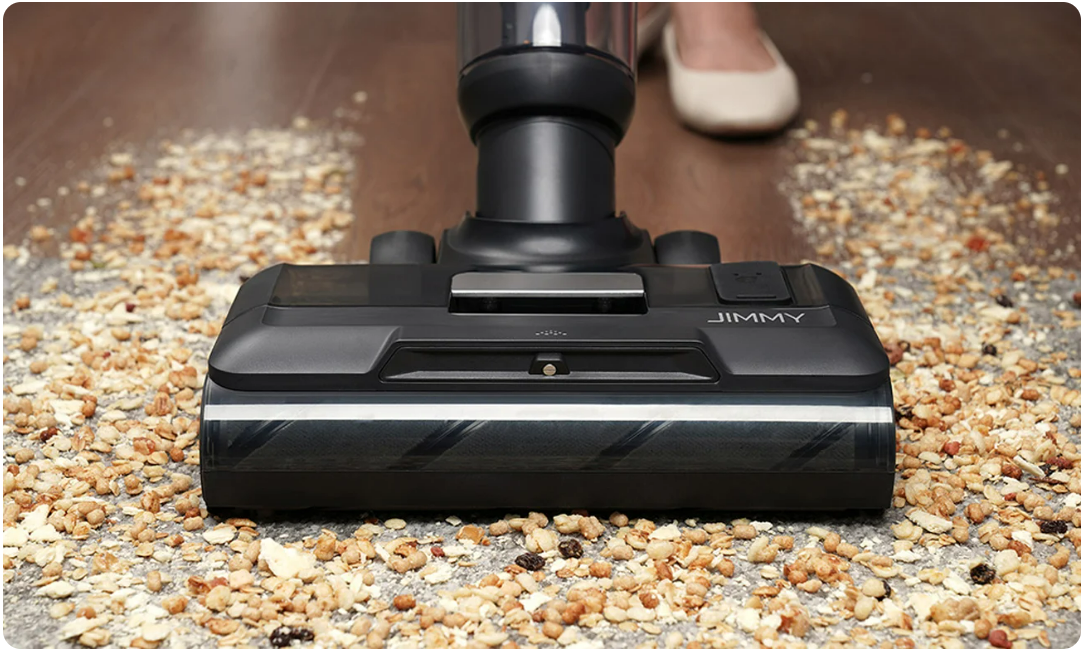 Чи є у вас вдома килими та тверда підлога? З Джиммі ви легко наведете їх у порядок! Пилосос пропонує 2 різні щіткові валики. Один з них ідеально підходить для очищення таких поверхонь, як панелі або плитка. Видаляє як мокрі, так і сухі плями - навіть розлите молоко чи кава не заважають. Другий ролик ідеально підходить для килимів - він ефективно видаляє крихти, пил і волосся, приховані в їх волокнах. Крім того, пилосос інтелектуально регулює потужність всмоктування відповідно до поверхні, що очищається.