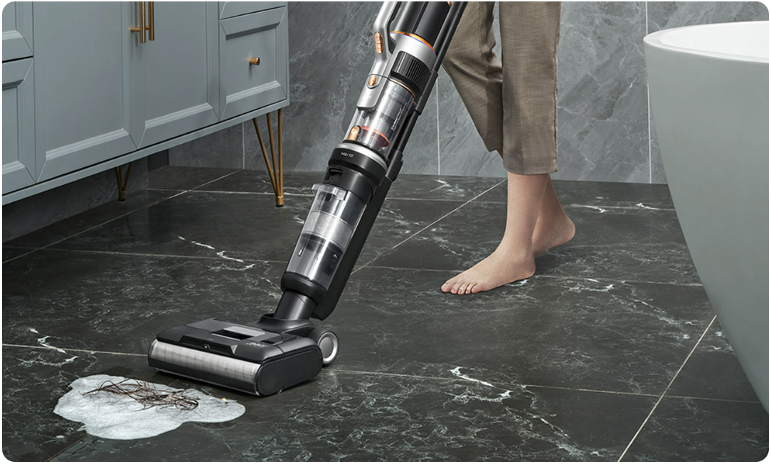Зробіть підлогу у вашому домі блискучою чистотою. Завдяки безщітковому двигуну потужністю 350 Вт HW10 швидко й ефективно видаляє пил, волосся та крихти. Крім того, завдяки особливій конструкції щітки, прилад дозволяє ретельно пропилососити уздовж стін і у важкодоступних кутах. З Jimmy ви також маєте повний контроль над кількістю води, яка розпилюється під час прання. Це означає, що підлога висихає дуже швидко, і вам не потрібно турбуватися про плями від води чи промокання килима.
