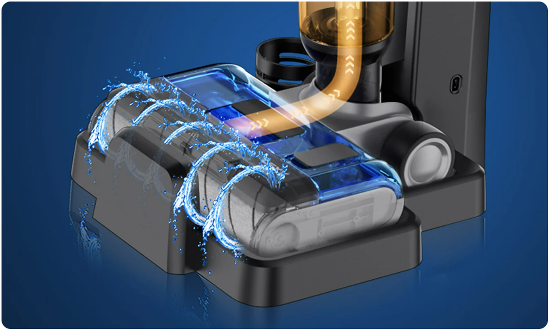 Вам більше не потрібно бруднити руки чи витрачати час на чищення валиків щіток пилососа. Просто натисніть кнопку, і пристрій автоматично промиє їх чистою водою з бака, а потім висушить. Завдяки цьому ви можете бути впевнені, що щойно зібраний бруд не опиниться на чистій підлозі. Вам також не доведеться турбуватися про неприємний запах. Зберігати пилосос і аксесуари також не складе труднощів - база з функцією зарядки в комплекті дозволяє це зробити.