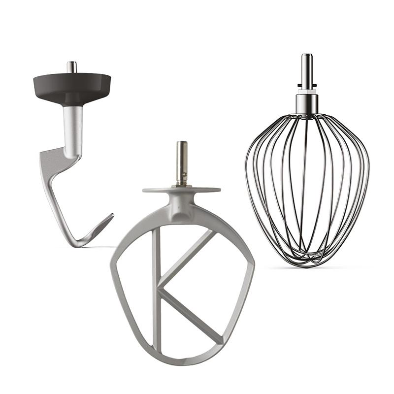 • Змішувач K – секрет ідеальних результатів змішування. Це дозволить вам приготувати тістечка, наприклад, бісквітний, пісочний або макаронний, печиво, цукерки, різноманітні начинки та начинки, пюре та багато інших страв. • Віночок – неперевершений у збиванні вершків і приготуванні меренг, суфле, тістечок, соусів і майонезів. Ві