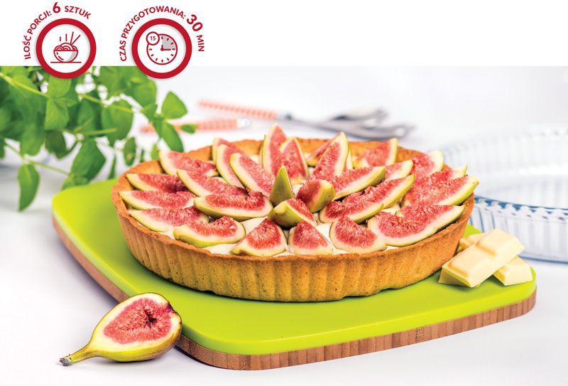 Інгредієнти: для основи: 250 г пшеничного борошна 100 г вершкового масла 80 г цукрової пудри 1 яйце дрібка солі для начинки: 250 г білого шоколаду 100 г 36% вершків (вершки) 10 свіжих інжиру додатково мед для подачі Виконання: У чашу робота Kasia Plus помістіть борошно, масло кімнатної температури, цукрову пудру, сіль і яйце. Швидко вимішуйте, поки тісто не сформує кулю. Загортаємо в харчову плівку і ставимо в холодильник на годину. Вийнявши тісто, розкачайте його та вистеліть ним форму для торта діаметром 28 см. Наколіть тісто виделкою, застеліть папером для випічки і наповніть квасолею або рисом. Випікати приблизно 20 хвилин. Зніміть «кр