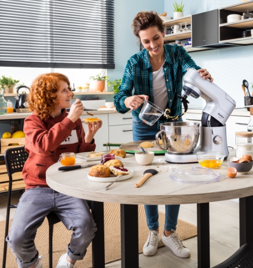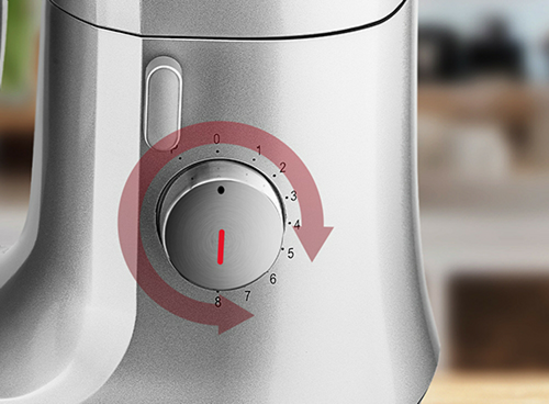 Залежно від сировини, яку ви використовуєте, незалежно від того, чи ви замішуєте дріжджове тісто, збиваєте вершки чи подрібнюєте м’ясо, ви можете вибрати одне з 8 налаштувань швидкості робота. І ви можете зробити це за допомогою практичної ручки.