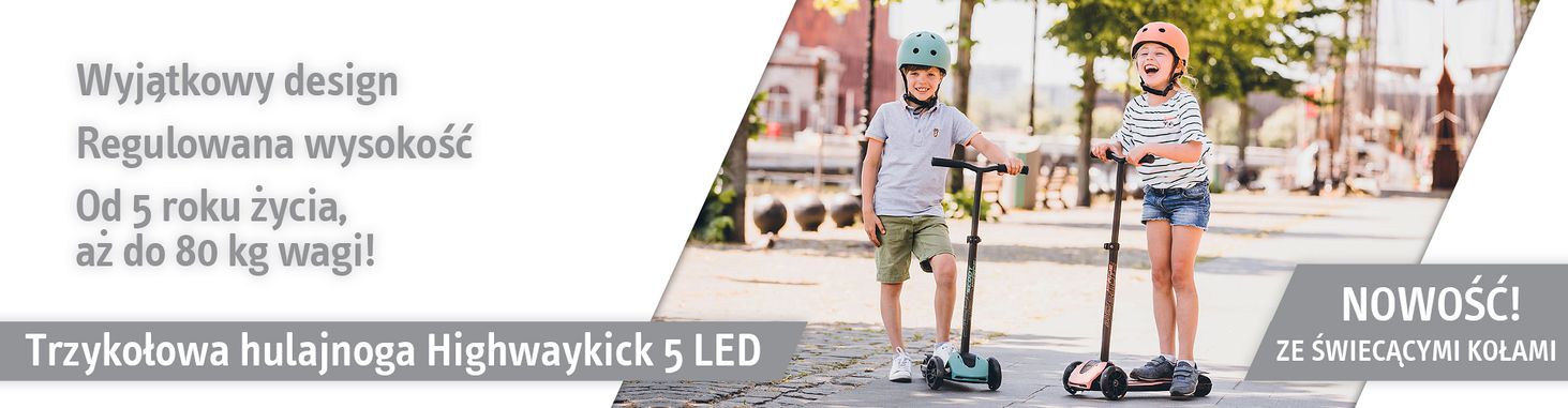 Highwaykick 5 LED — це інноваційний триколісний самокат-балансир від австрійського бренду Scoot & Ride, який оснащено світлодіодними колесами, які підсвічуються під час їзди. Колекція представлена в стильних, чорних і пастельних тонах. Ідеально підходить для активних дітей від 5 років, підлітків і навіть для їхніх батьків або дорослих з максимальною вагою до 80 кг і зростом 180 см!