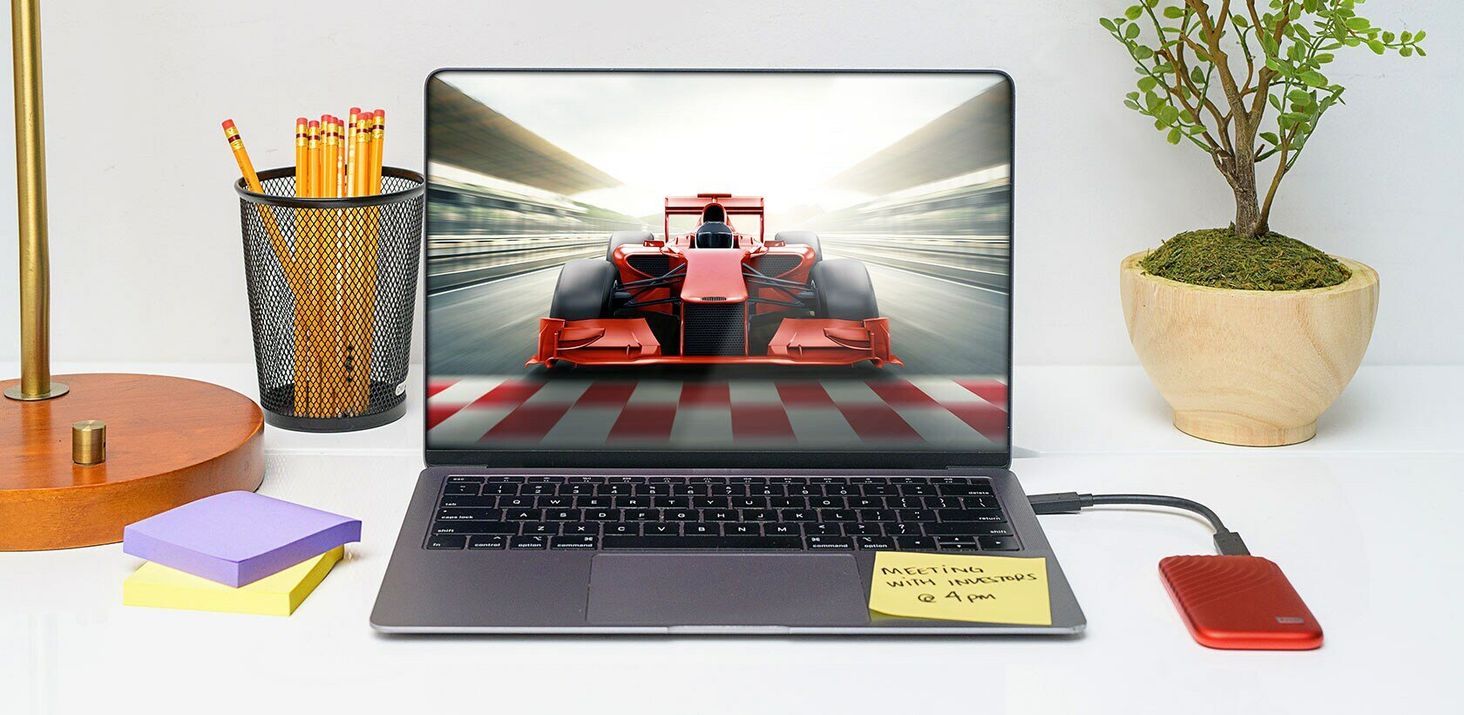 Диск не потребує налаштування. Він готовий до використання одразу з коробки та сумісний із комп’ютерами PC та Mac. My Passport™ SSD використовує технологію USB 3.2 Gen-2 і постачається з кабелем USB-C™ і адаптером USB-A для роботи зі старішими системами.