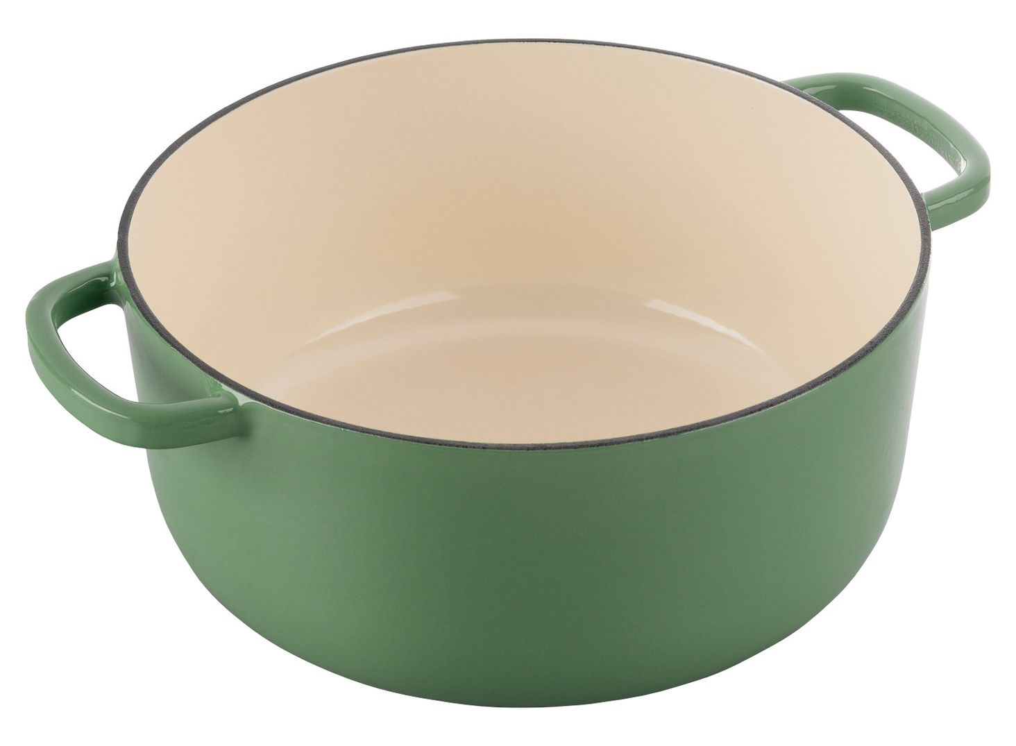 Каструля чавунна кругла, зелена, діаметр. 24 см і місткість 4 л. Добре зберігає тепло і рівномірно розподіляє тепло. Комплектується кришкою зі спеціальною структурою. Покритий емаллю.