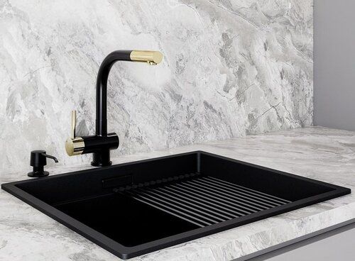 Оберіть Lobio Black/Light Gold Mat Ring і насолоджуйтесь красою та стилем, а також неперевершеною функціональністю на своїй кухні. Це не просто змішувач, це елемент, який підвищить комфортність повсякденних справ і надасть вашій кухні характер. Замовте сьогодні та переконайтесь, яку різницю може зробити одна добре підібрана деталь.