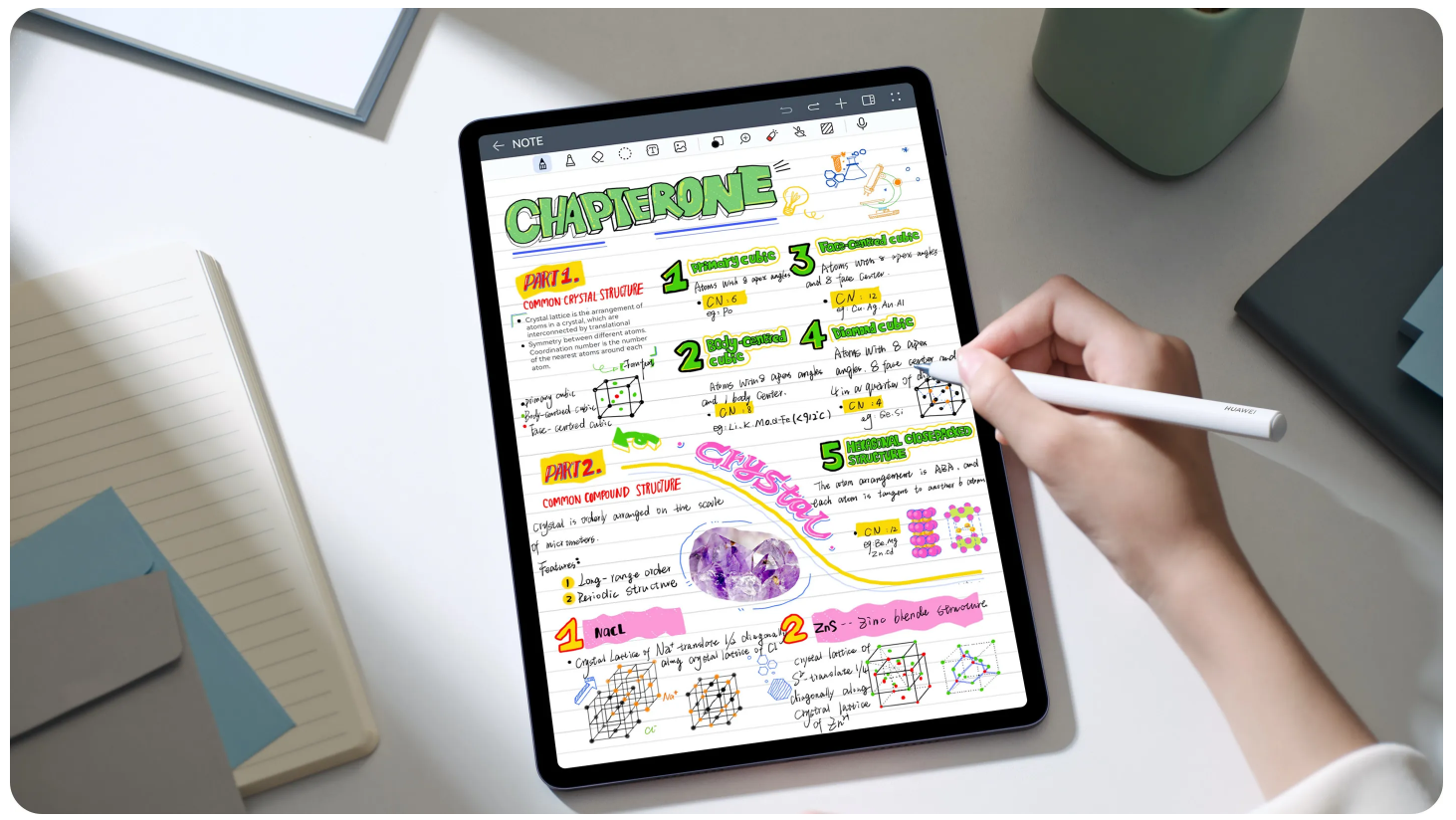 Дисплей PaperMatte10 має унікальну технологію мікровібрації та амортизації, щоб відтворити шелест пера на папері. Пишіть легко та природно за допомогою олівця HUAWEI M-Pencil (2-го покоління)3, який забезпечує 4096 ступенів визначення тиску.11