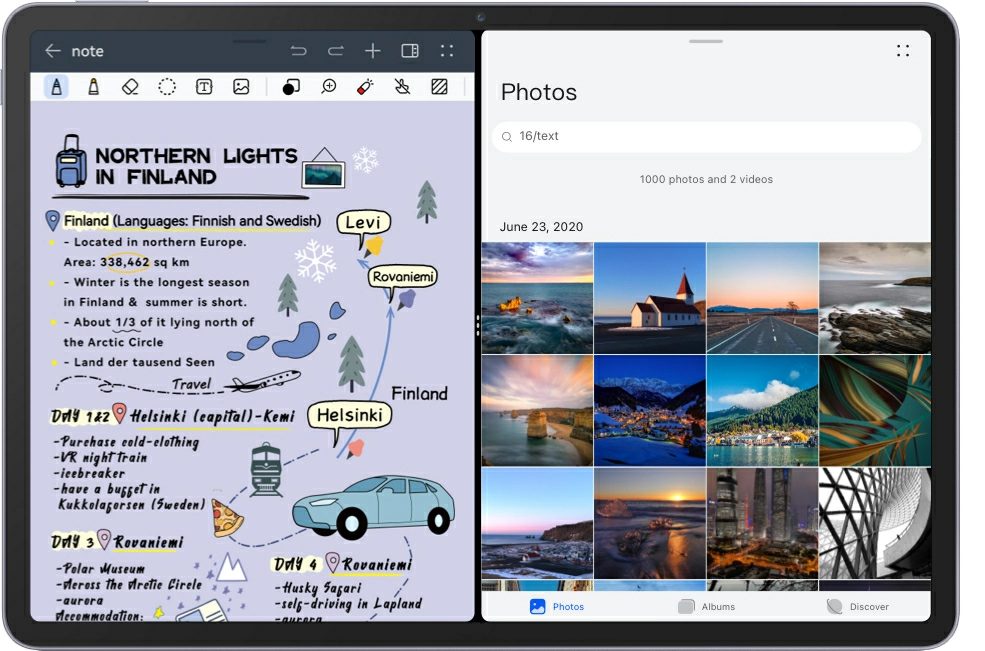Ваш професійний блокнот_x000D_ _x000D_ _x000D_ HUAWEI Notes тепер має більше нових функцій. Насолоджуйтесь миттєвим доступом до своїх нотаток завдяки персоналізованим обкладинкам. Створюйте привабливі нотатки на планшеті за допомогою цікавих шаблонів і елементів. Планшет також дозволяє перетворювати мову в текст в реальному часі. Завдяки розділеному екрану перевірка та перевірка стануть легшими, ніж будь-коли. Збільште масштаб свого дизайну до 15 разів, щоб детально завершити свою розумову карту.
