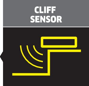 Датчики падіння надійно запобігають падінню RCF 3 зі сходів. Датчики постійно сканують підлогу. Якщо виявлено велике падіння або подібну небезпеку, контролер отримує сигнал, який змушує робота розвернутися.