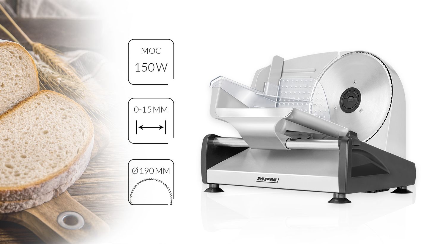 MKR-04M — це простий у використанні слайсер із товщиною нарізки від 0 до 15 мм! Завдяки йому ви зможете швидко і якісно нарізати необхідні продукти, створюючи смачний сніданок і вечерю для всієї родини. Для вашої безпеки пристрій оснащений прижимом для продуктів, який захищає ваші пальці під час нарізання, і запобіжником, що запобігає. випадкова операція. Щоб підвищити стійкість, слайсер MKR-04M має знімні ніжки, що не ковзають, тому підтримувати обладнання в чистоті не буде проблемою. Таким же чином ви можете демонтувати напірну подачу та напрямні, зберігаючи їх у бездоганній чистоті.