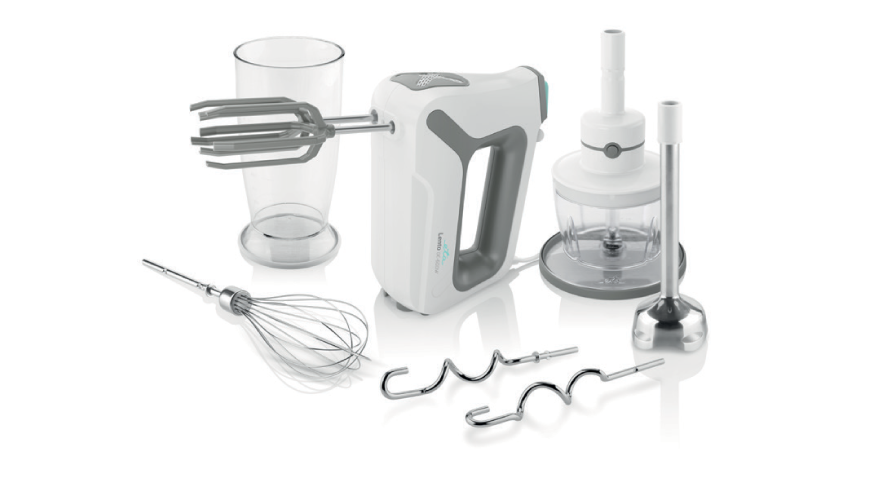 Ручний міксер Lento замішує тісто, нарізає овочі, збиває яєчні білки та вершки, а також створює шовковисті креми та бісквітні тістечка чи торти. Крім того: змішує фрукти в соки, приготує молочні коктейлі, ароматні соуси, шовковисті крем-супи, майонези, ідеальні млинці та поживні страви для дітей. Ви також можете використовувати його для нарізання та подрібнення фруктів і овочів, для начинки, сиру, кави, маку, горіхів, сушених трав і спецій. З його допомогою можна готувати маринади, песто, пюре та заправки.