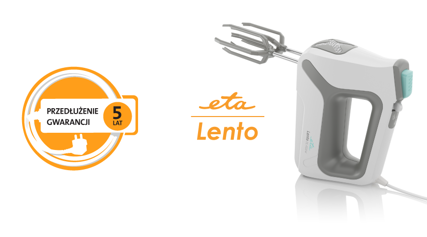 Змішувач ETA Lento відрізняється тихою роботою. Інноваційний дизайн наконечників для збивання забезпечує ідеальне замішування сировини і в той же час безпечний для посуду, в якому воно замішується, оскільки не пошкоджує його поверхню.