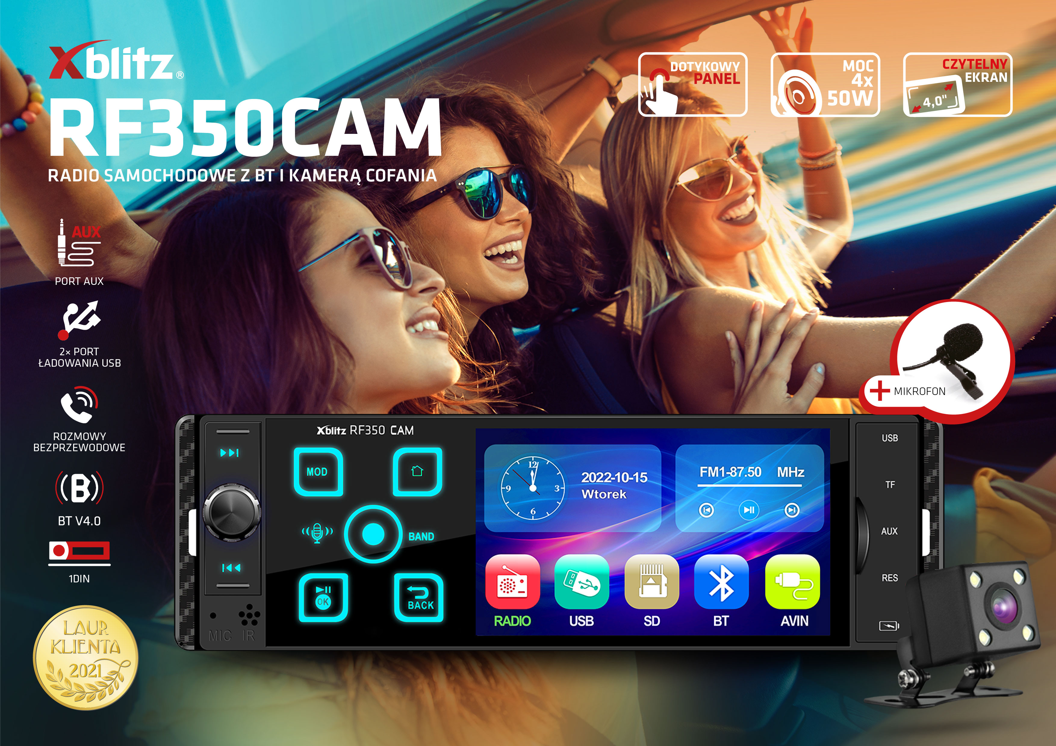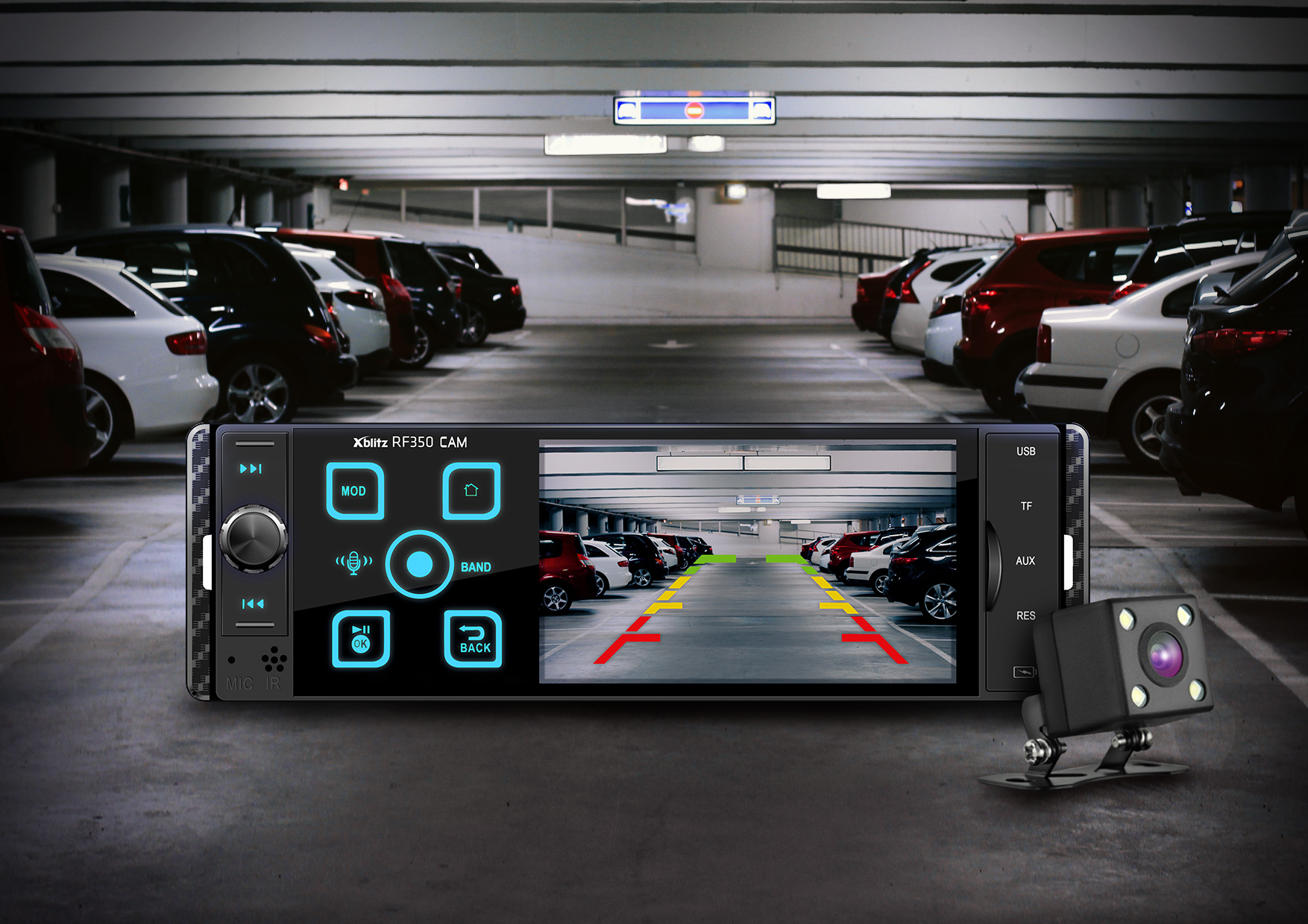 Xblitz RF 350 CAM — це набагато більше, ніж просто автомагнітола. Прилад оснащений камерою заднього виду, яка дозволяє точно визначити, що знаходиться позаду автомобіля.