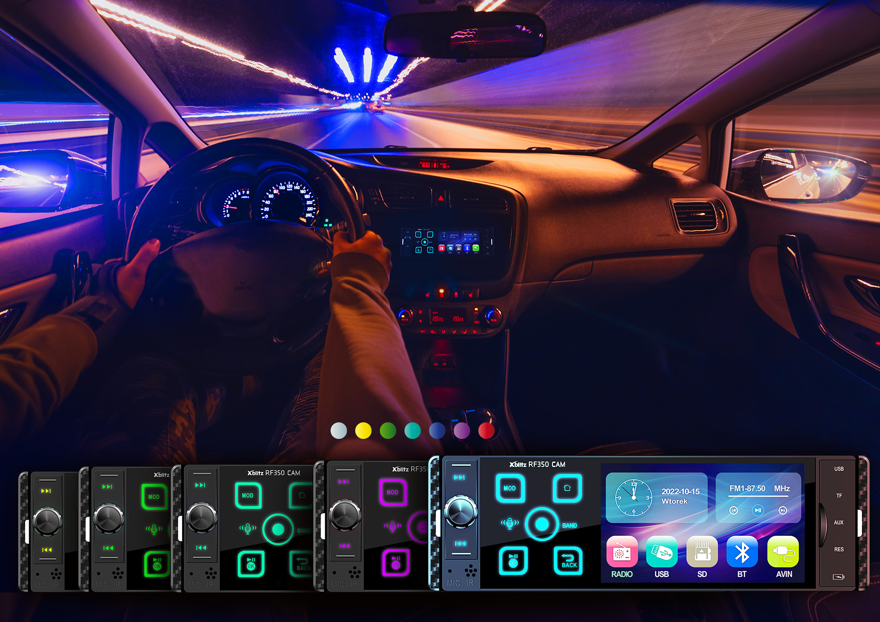 Завдяки семи різним кольорам підсвічування ви можете підібрати колір радіоприймача до салону кабіни вашого автомобіля. Ви можете вибрати з таких кольорів: білий, фіолетовий, синій, жовтий, червоний, синій і зелений.