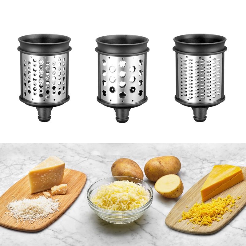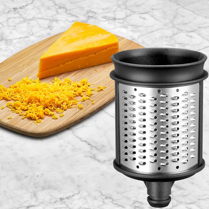 Барабанні тертки гострі, виготовлені з нержавіючої сталі та їх можна мити в посудомийній машині.