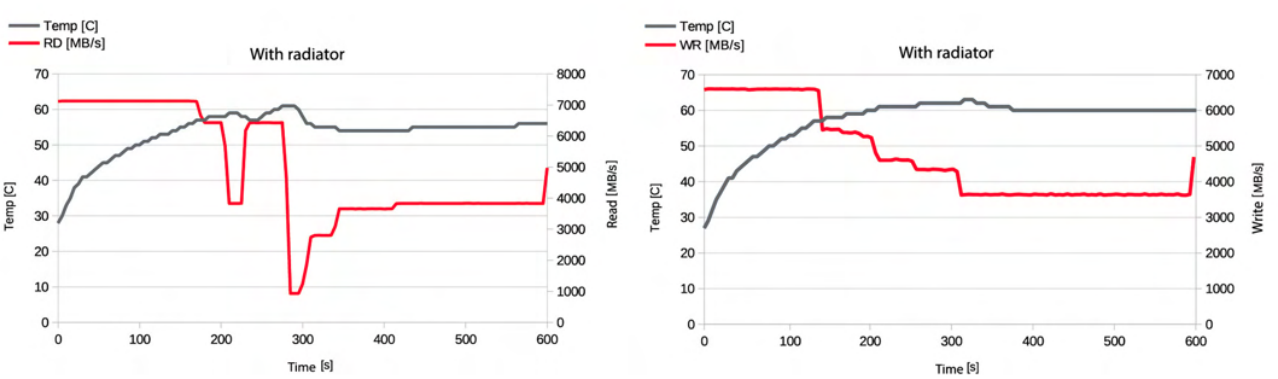 Радіатор виготовлений з алюмінію, який чудово проводить тепло, а завдяки додатковим отворам і вирізам, які також гармоніюють з логотипом бренду, забезпечується вільний і рівномірний потік повітря. Після встановлення він забезпечує високу продуктивність диска навіть у надзвичайно важких умовах роботи, що доведено лабораторними тестами - подовження часу роботи диска на найвищій швидкості досягає до 60% порівняно з ситуацією, коли ми не використовуємо жодного типу тепла. інструмент розсіювання. Висоту радіатора було оптимізовано, щоб бути якомога меншим, але водночас максимально ефективним.
